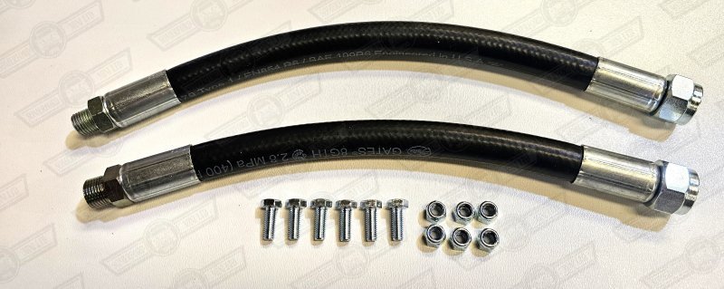 Oil Cooler rubber hose kit. 1959-1985 for engines fitted with inertia starter motors. Popular for cars with the Cooper S style oil cooler set-up. The block to cooler hose is 12'' long and the oil filter to cooler hose is 14'' long.